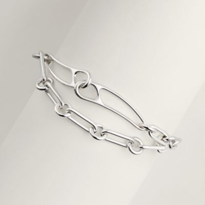 Here, the perfection of Hermès jewelry craftsmanship harmoniously comes together with creative shapes. Whether its Hermès necklaces and long necklaces featuring contemporary and sculptural volumes or signature silver earrings and Hermès silver cufflinks: find the perfect piece from among these precious metals.