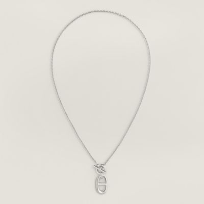 Material of light and movement, Hermès solid silver turns into a sculpture to sublime the carriage of the head. Find the House's historical icons, from the naval force of the Chaîne d'ancre line to the engraved seals of the Ex-Libris collection. Let white metal flow over the skin with our [necklaces and long necklaces], plays of links with architectural volumes. Prefer the symbolic discretion of our [pendants], precious amulets with lunar radiance. Finally, dare the perfect hybrid between jewel and accessory with our [bag jewelry], silver miniatures that reinvent nomadic elegance.