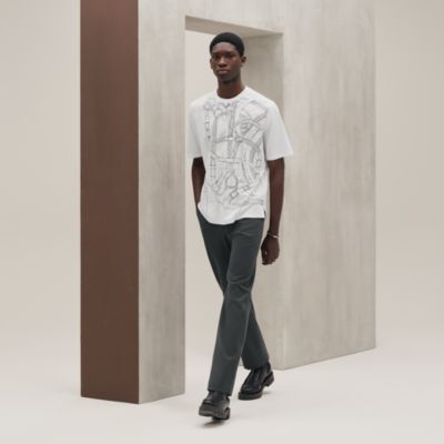 Creating suits with clean lines and sensual materials, with a focus on movement to ensure they stand the test of time. Put on a shirt with discreet signatures or daring prints and colors. Then jump into a plain or printed T-shirt for a more casual look. The Hermès men's ready-to-wear collection offers a wide range of styles to suit a variety of lifestyles and express one's personality through the seasons.