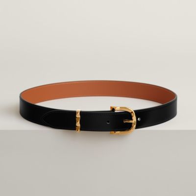 Volte-face reversible belt buckle & Reversible leather strap 32 mm, Color: Black