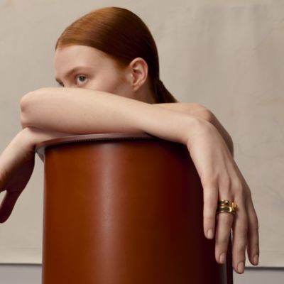 The metallic notes of the jewelry meet the suppleness of leather for a lyrical elegance.