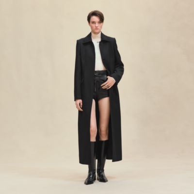 Double-faced cashmere coats, puffer coats in plume canvas, trench coats in technical fabrics, straight, sporty jackets in leather, or slim-fitting jackets with equestrian accents: the women's collection plays on contrasts and pays homage to the House's heritage.