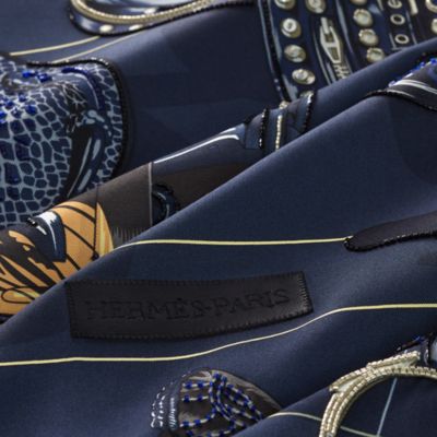 Delve into the colorful, ethereal and sensory world of Hermès scarves. Countless ways to style: The Maison's emblematic silk scarves are best accessorized using scarf rings, while larger Hermès shawls can be knotted to reflect your creativity. Whether draped around your neck or tied in your hair, glistening rectangle silk scarves and Hermès bandanas offer infinite possibilities to express your style with a touch of effortless elegance.