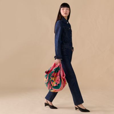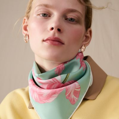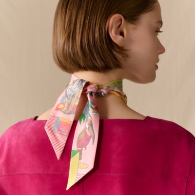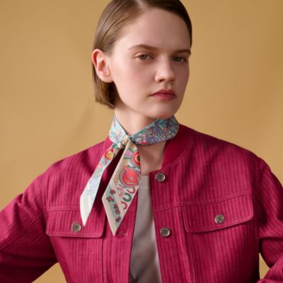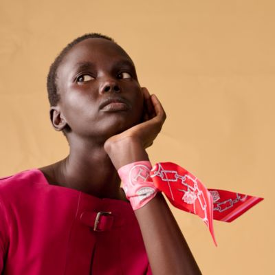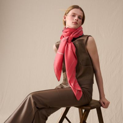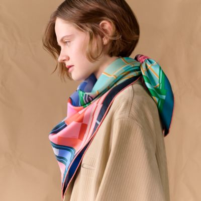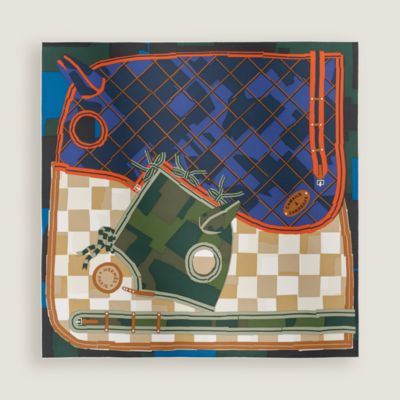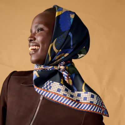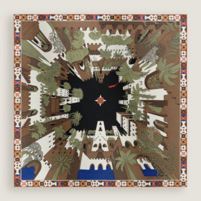 An oasis of print in a bright setting, the silk tells wonderful stories