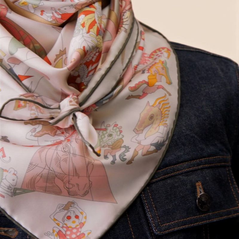This iconic Hermès piece embodies the essence of powerful beauty and charismatic femininity. The 90 scarf symbolizes the boundless freedom of constantly renewed creation, unlimited emotion and the unique expression of a personal narrative waiting to be written.