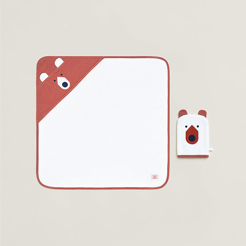 Bath set with bath wrap and washcloth with "Animaux Blocks" embroidery