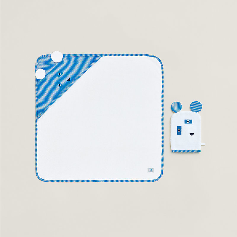Bath set with bath wrap and washcloth with "Animaux Blocks" embroidery