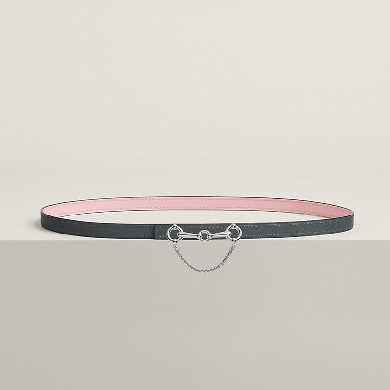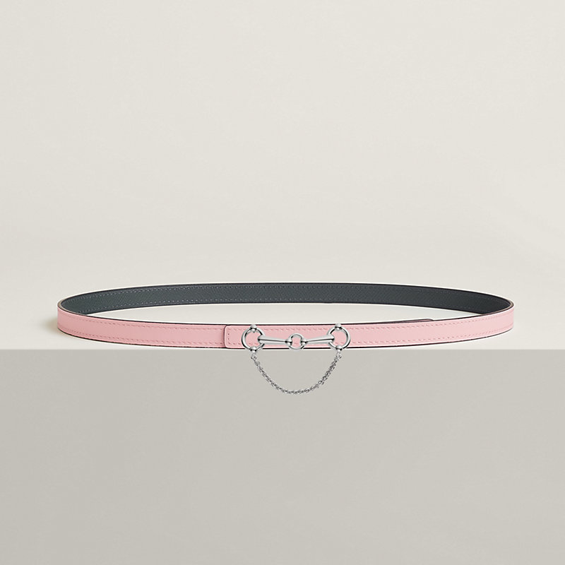 This belt buckle, with its sleek and contemporary design, takes the shape of a horse bit and belongs to the equestrian world that is so dear to Hermès heritage. The chain adds movement and places this product within the fantasy segment.