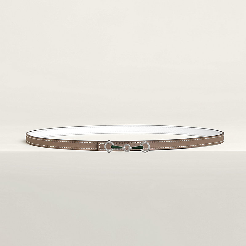This buckle, with its finesse and length, takes the form of a horse bit and is part of the equestrian universe, so deeply related to the House. An elegant and colorful buckle thanks to the lacquer worked in relief on the two bars of the bit.