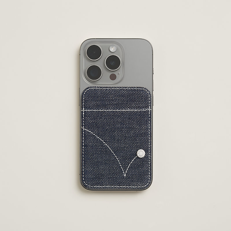 The Bounce card holder features two Hermès signatures: the iconic contrasted saddle stitch and the Clou de Selle, in reference to your favorite denim's rivets and pocket stitches.