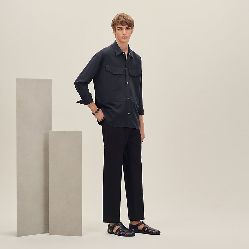 Buttoned boxy fit overshirt in cotton twill and cashmere (52% cotton, 48% cashmere)