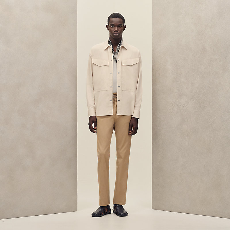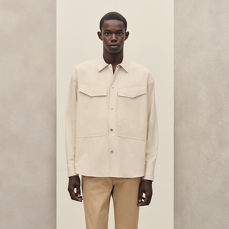 Buttoned boxy fit overshirt in cotton twill and cashmere (52% cotton, 48% cashmere)
