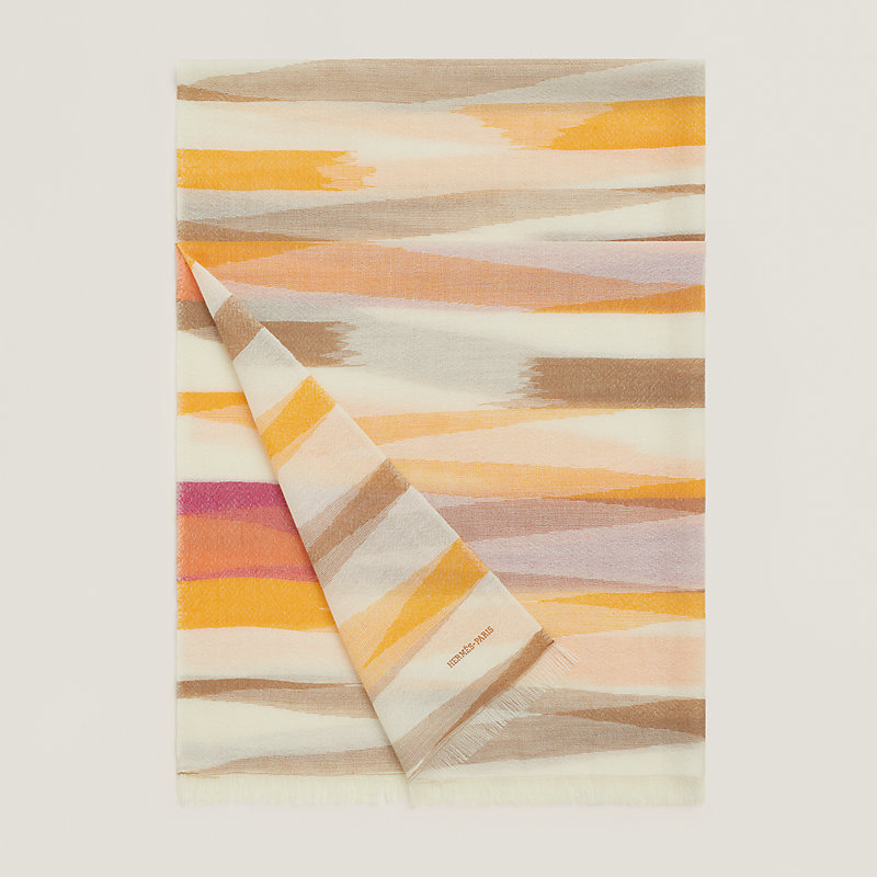 In an ode to craftsmanship, this stole highlights a camouflage motif that takes shape in ikat, a know-how of Nepalese artisans.