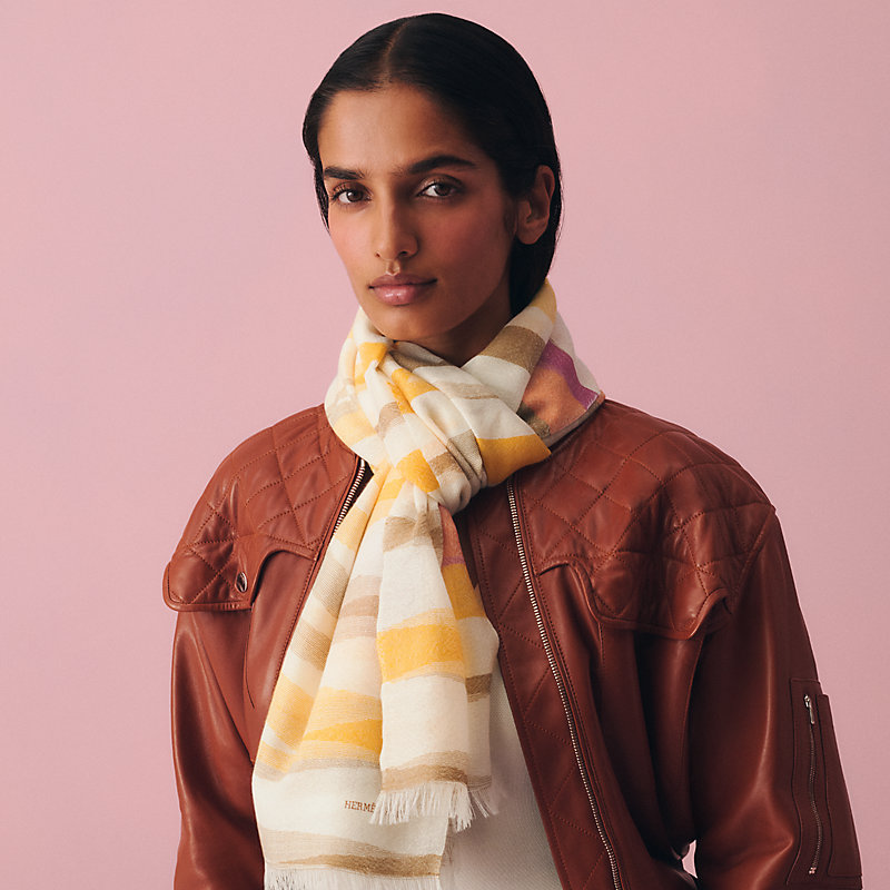 Preserve the beauty of your scarf by avoiding contact with rain, water and other chemicals. Store it flat and untied, and entrust it to a professional dry cleaner when needed.