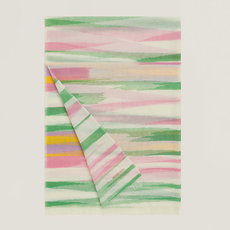In an ode to craftsmanship, this stole highlights a camouflage motif that takes shape in ikat, a know-how of Nepalese artisans.
