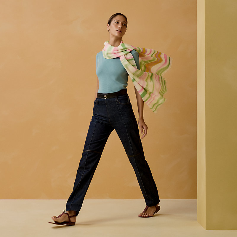 Preserve the beauty of your scarf by avoiding contact with rain, water and other chemicals. Store it flat and untied, and entrust it to a professional dry cleaner when needed.