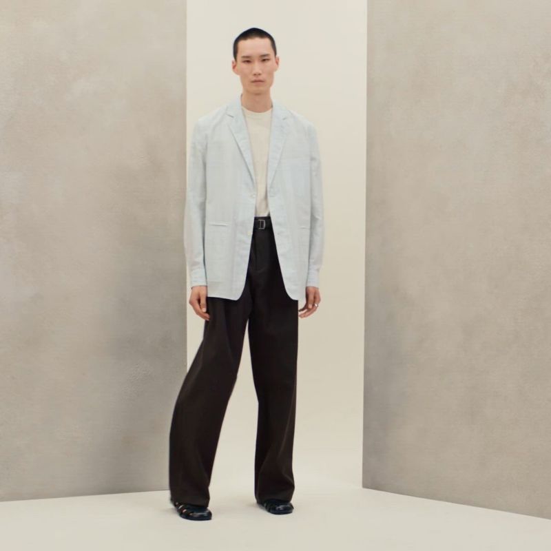 This innovative piece is redefining the codes of tailoring. A shirt jacket that embodies the summer spirit with an airy, dry-feel fabric enhanced by Hermès' exclusive check patterns. Its matte, semi-transparent finish evokes understated seaside elegance. A signature piece for Spring-Summer 2026, it will breathe new life into your wardrobe.