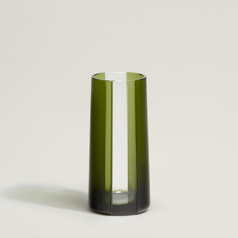 Inspired by the bright, graphic patterns of jockeys’ silks, these three vases were created on the island of Murano, the home of Venice’s master glassmakers. The artisan creates what is known as "cased" glass, composed of a transparent layer and a colored layer, by mouth-blowing the molten material. When cold, sections of the colored glass are then ground away to create patterns. This extremely precise know-how reveals different interplays of color and transparency on each vase.