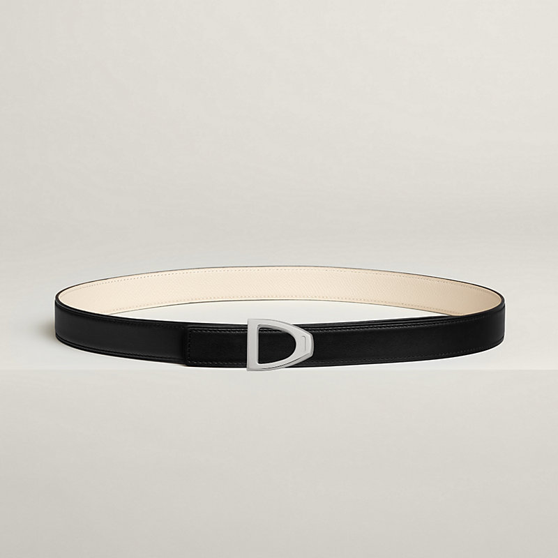Inspired by the equestrian world, this buckle is shaped like a stirrup, the Hermès' emblem. A delicate Hermès engraving adorns the edge of the buckle.