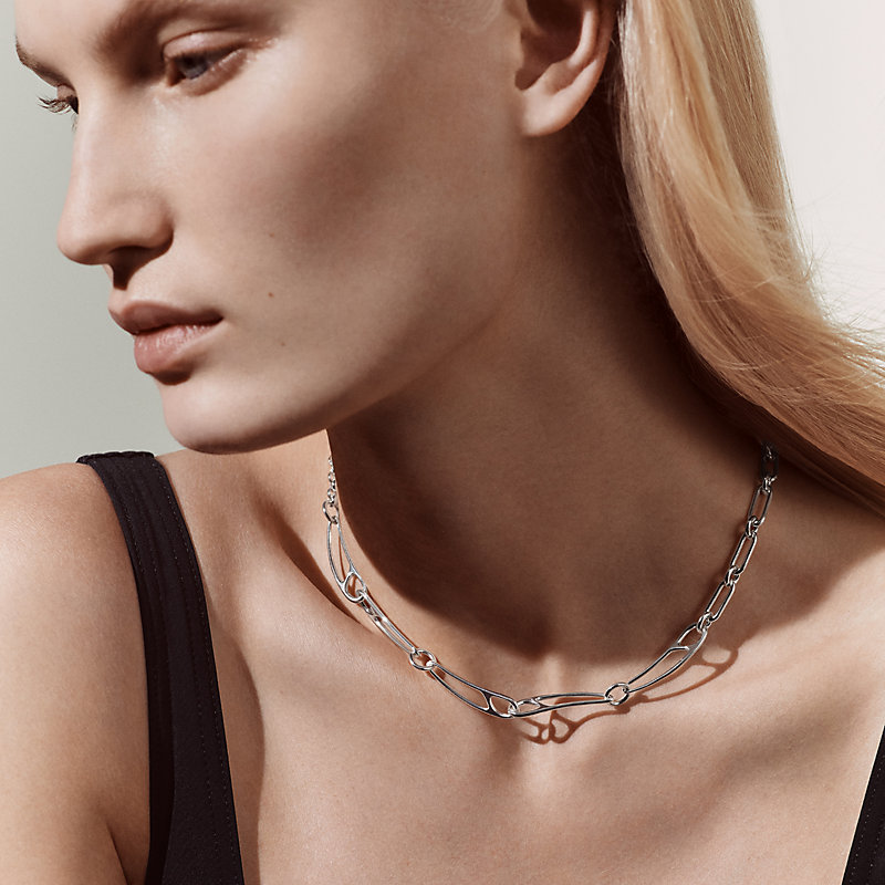 The link of the Chaine d'ancre is elongated and shaped like a safety pin. A contemporary, rock'n'roll version of an iconic Hermès jewelry piece.