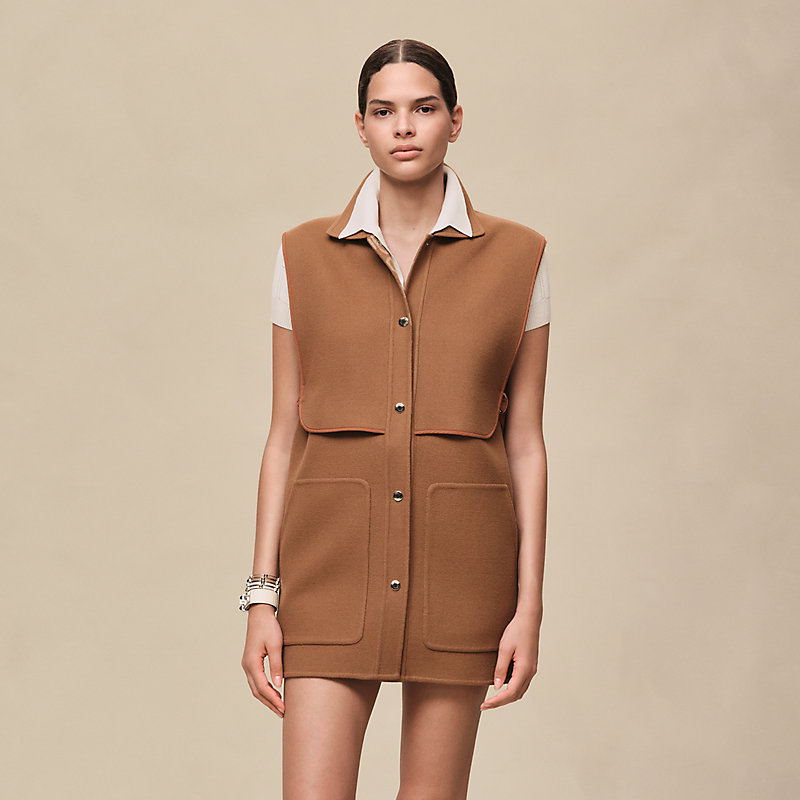 Short vest in double-sided wool with "Chaine d'Ancre" motif (100% virgin wool)