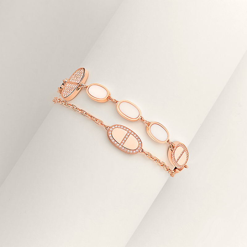 This story began in 1938, when Robert Dumas, a member of the Hermès family, decided to take inspiration from a ship anchor chain to design a bracelet. Thus the Chaîne d'ancre was born: a naturally balanced jewel with a sporty yet chic allure. The links of the chain – polished, circular-grained or twisted – play on shapes and volumes to bring forth a multitude of necklaces, rings, earrings and bracelets.