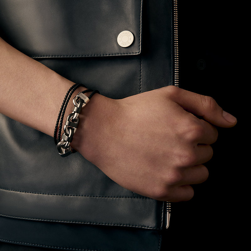 Double tour braided bracelet in metal, matte ceramic and Swift calfskin.