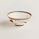 The Cheval d'Orient collection pays tribute to Hermès' equestrian heritage, evoking the silk caravans and conviviality of the Orient, inspired by 15th and 16th century Persian miniatures. The design is a testament to technical ingenuity: utilizing a palette of 29 colors, meticulously applied to each unique design spanning across the 55 pieces, the collection is tailored for every occasion lunch, dinner, tea/coffee and includes decorative objects. Cheval d'Orient revisits the classic shapes and dimensions of Western tableware, such as a cup on a pedestal or an elegant tureen with open handles.