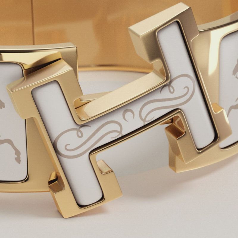 To open and close your Hermès bracelet, follow these three steps. 1. Carefully slide it over your wrist. 2. Push both ends together to close. 3. Rotate the "H" of the clasp until straight. And Click!