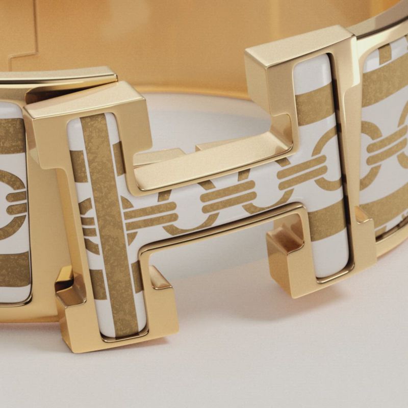 This bracelet opens and closes thanks to an ingenious toggle clasp which reveals an "H".