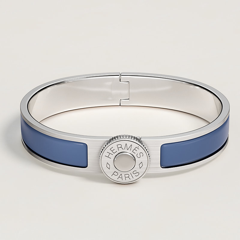 This bracelet features the Clou de Selle, the iconic signature of the House. Here it becomes a clasp with an ingenious mechanism, with a grooved crown inspired by watch winding movements.