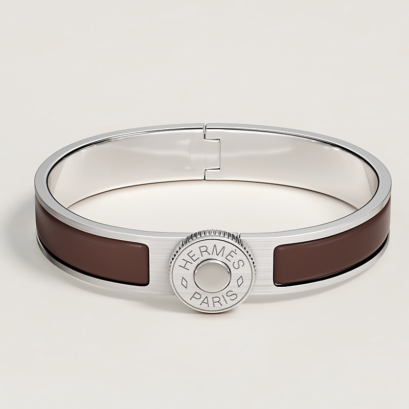 This bracelet features the Clou de Selle, the iconic signature of the House. Here it becomes a clasp with an ingenious mechanism, with a grooved crown inspired by watch winding movements.