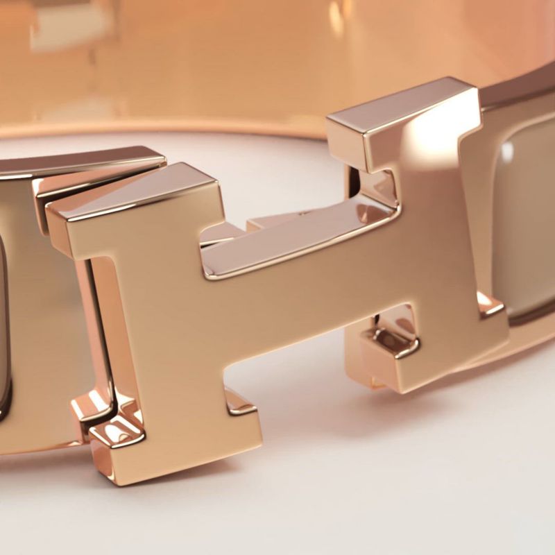To open and close your Hermès bracelet, follow these three steps. 1. Carefully slide it over your wrist. 2. Push both ends together to close. 3. Rotate the "H" of the clasp until straight. And Click!