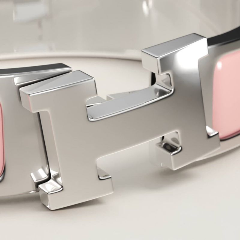 To open and close your Hermès bracelet, follow these three steps. 1. Carefully slide it over your wrist. 2. Push both ends together to close. 3. Rotate the "H" of the clasp until straight. And Click!