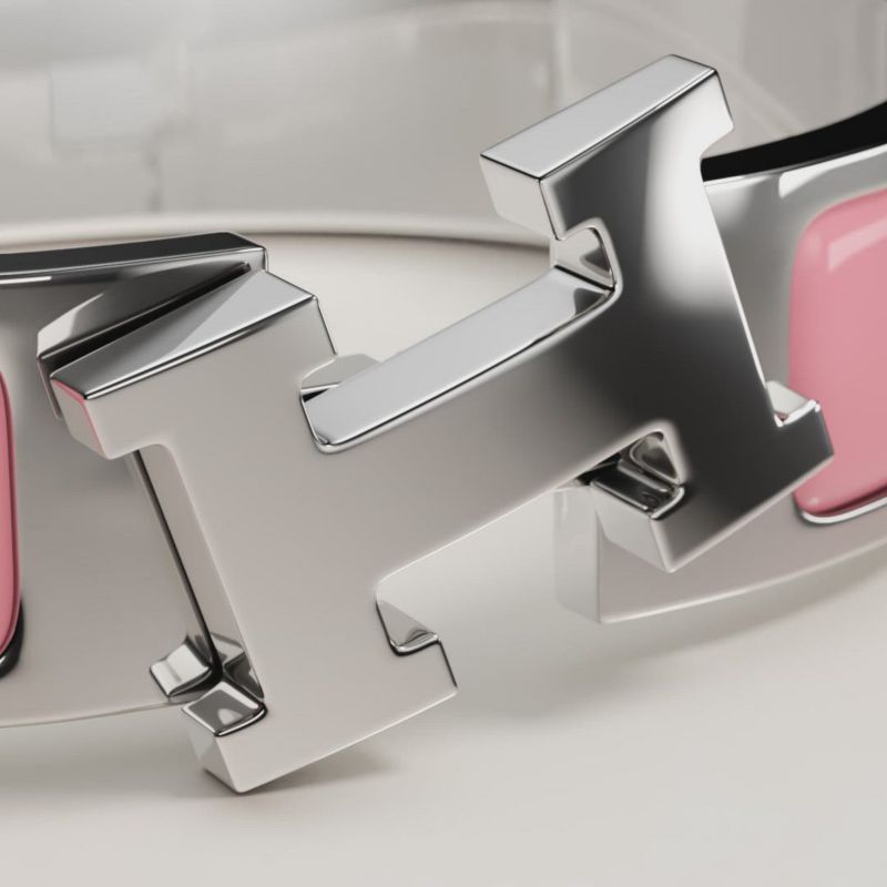 To open and close your Hermès bracelet, follow these three steps. 1. Carefully slide it over your wrist. 2. Push both ends together to close. 3. Rotate the "H" of the clasp until straight. And Click!