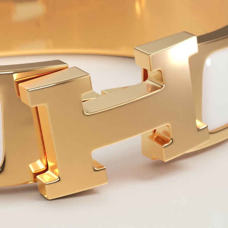 To open and close your Hermès bracelet, follow these three steps. 1. Carefully slide it over your wrist. 2. Push both ends together to close. 3. Rotate the "H" of the clasp until straight. And Click!