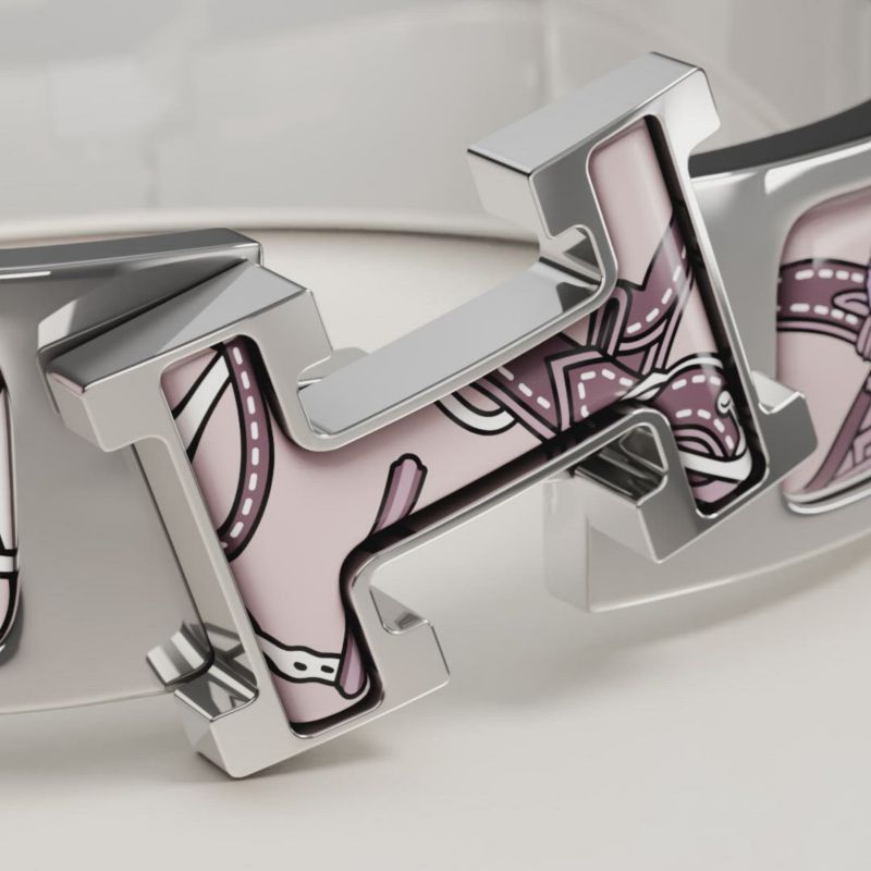 To open and close your Hermès bracelet, follow these three steps. 1. Carefully slide it over your wrist. 2. Push both ends together to close. 3. Rotate the "H" of the clasp until straight. And Click!