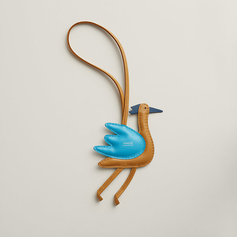 Crane charm in lambskin and calfskin