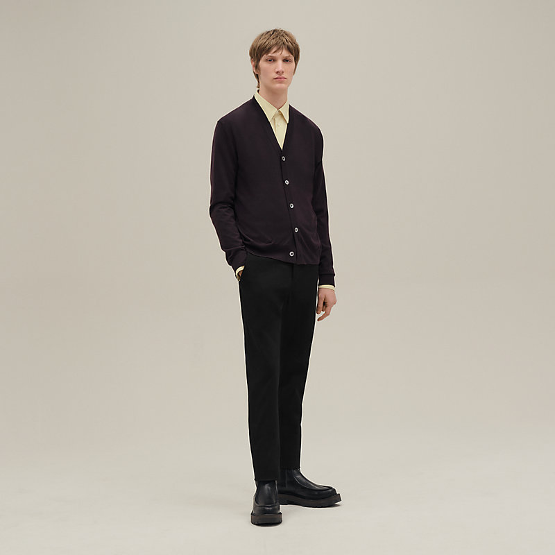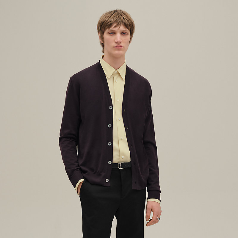 Buttoned long-sleeve cardigan in wool with "Detail H" detail (100% wool)