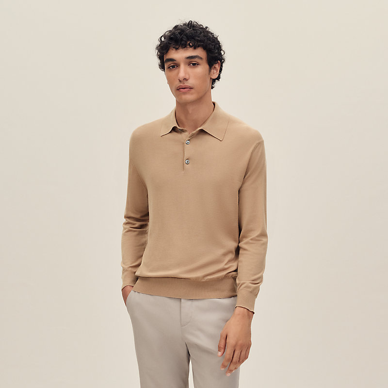 Long-sleeve polo shirt in wool with "H" detail (100% wool)