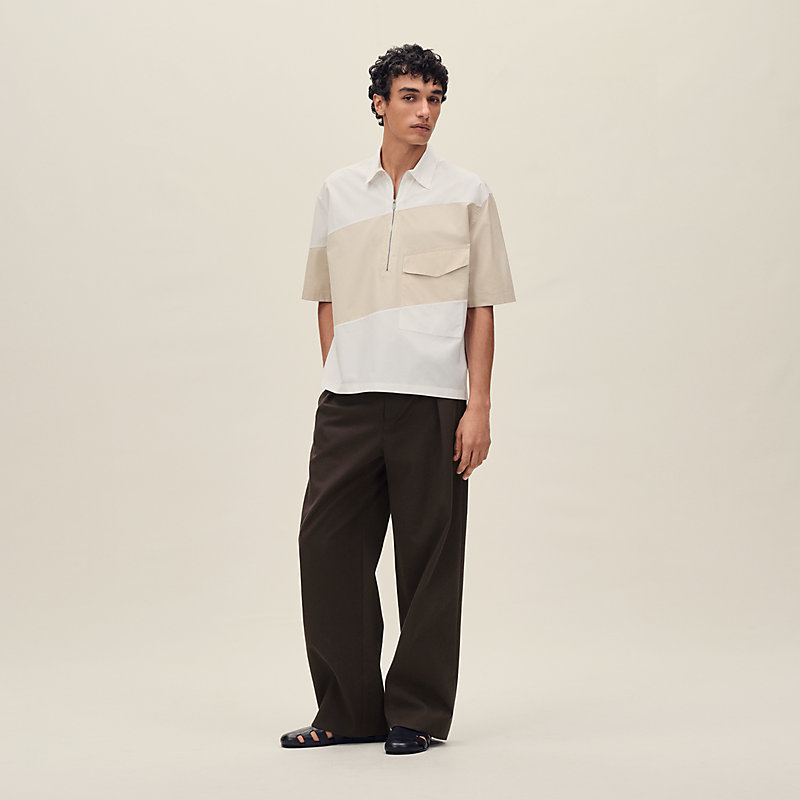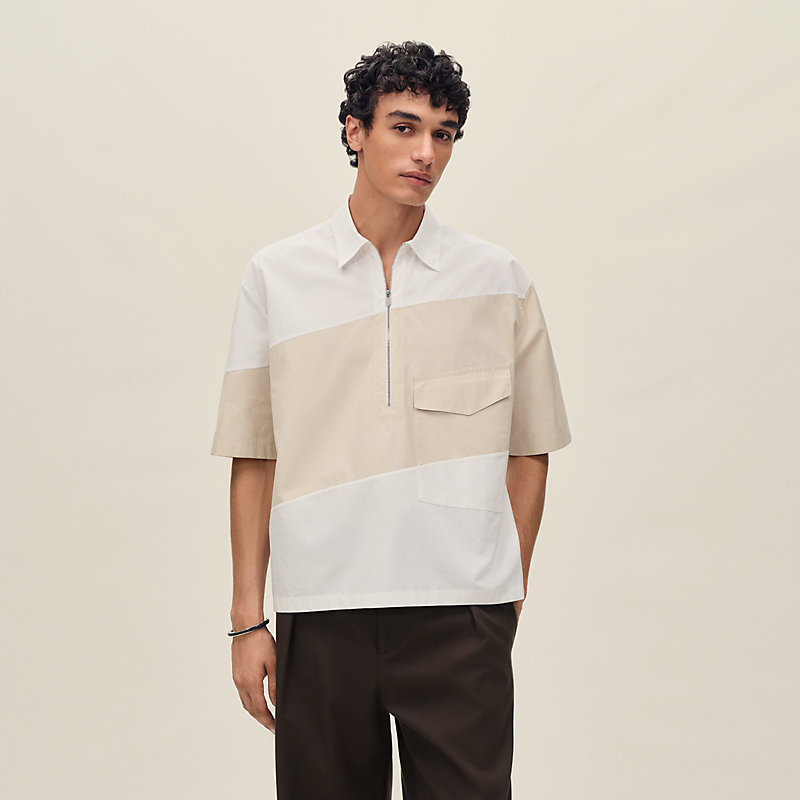 Loose fitting boxy fit short-sleeve polo shirt in compact poplin with "En diagonale" detail (100% cotton)