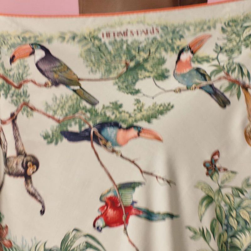 The equatorial zone of South America has a remarkably diverse fauna and flora, undoubtedly one of the richest on the planet. A wonderful source of inspiration for Robert Dallet, a passionate naturalist, talented illustrator, and close partner of the Maison. Graceful cheetahs, acrobatic monkeys, and colorful macaws, toucans and parakeets bustle beneath the canopy of this wild and tropical triangle.