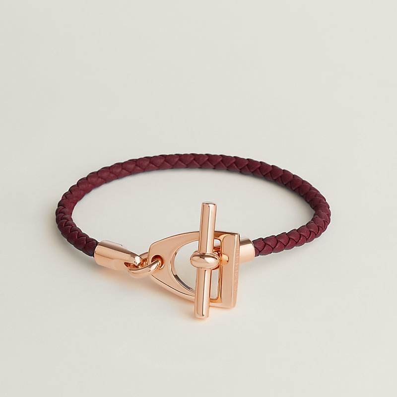 Braided bracelet in Swift calfskin and metal, with stirrup clasp inspired by Hermès' equestrian heritage.