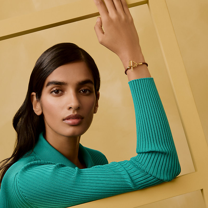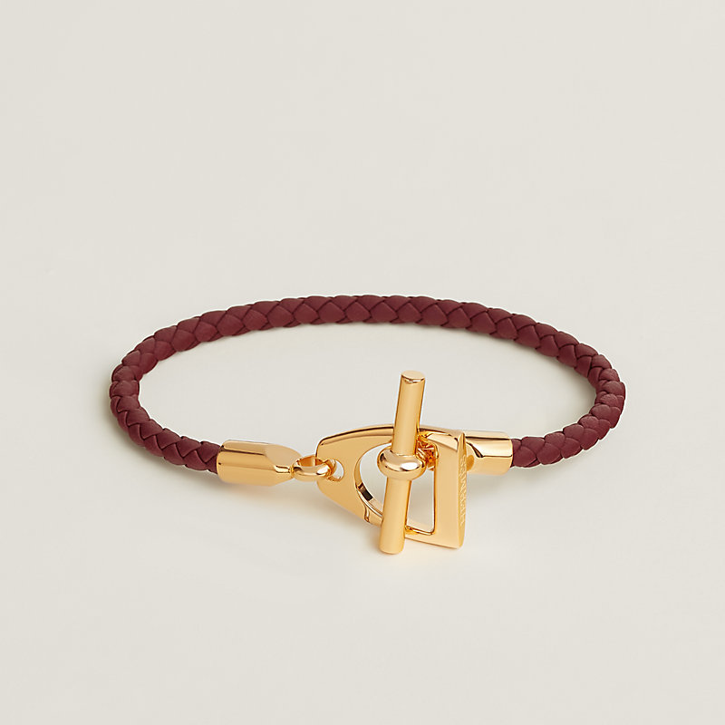 Braided bracelet in Swift calfskin and metal, with stirrup clasp inspired by Hermès' equestrian heritage.