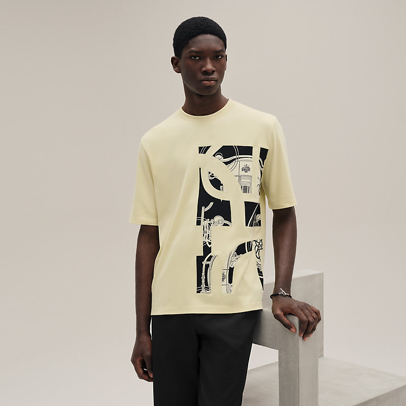 This t-shirt in cotton and cashmere is enhanced by a silk insert printed with the "Ex-Libris" motif. The iconic design is reinterpreted here through the pictorial grid of a graphic chain. The result? A subtle fusion of heritage and modernity, where the softness of materials meets the strength of graphic motifs. A timelessly elegant piece, designed to uniquely enhance everyday life.
