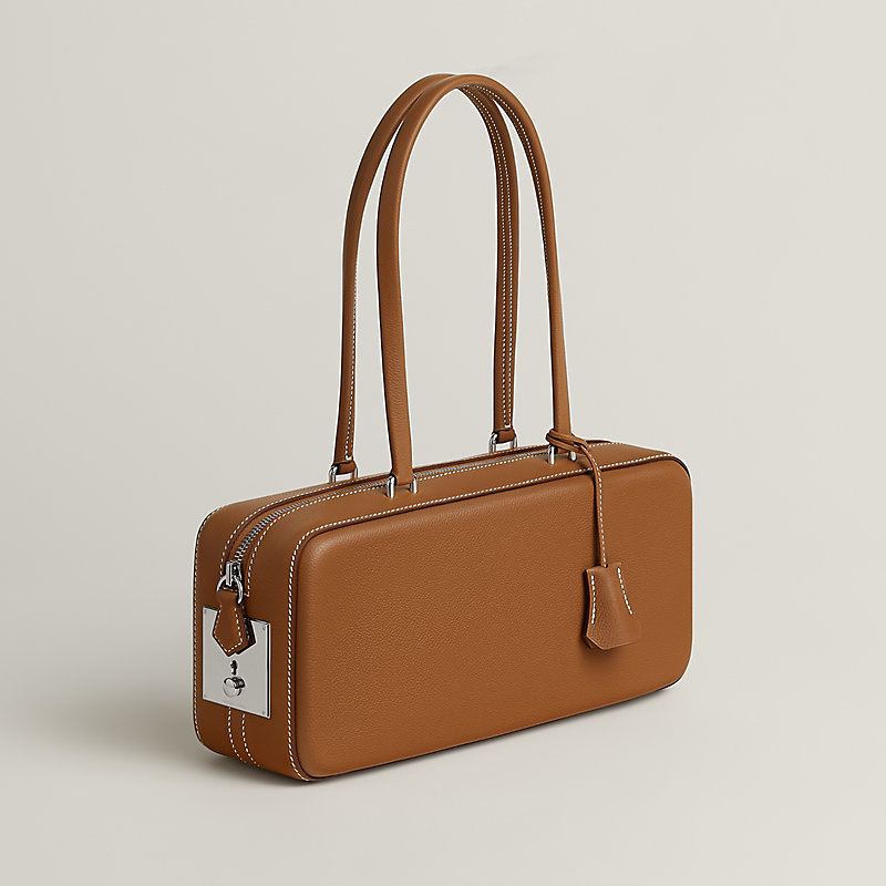 Inspired by the silhouette of a travel bag, the Faubourg Express bag pays tribute to the iconic 24 Faubourg Saint-Honoré store, the theme of 2024, while also honoring the Maison's heritage. Its gold or silver-finished lock draws inspiration from the intricate mechanisms and fine craftsmanship of the Plume bag and the archival Quirus model. The bag's minimalist design and defined structure reveal the sophisticated craftsmanship of the master saddler and leatherworker: mold assembly, seam-joining on the handle, and clasp beading. A highly contemporary bag in two sizes, designed to be worn over the shoulder or on the arm, ensuring an elegant silhouette for everyday wear.