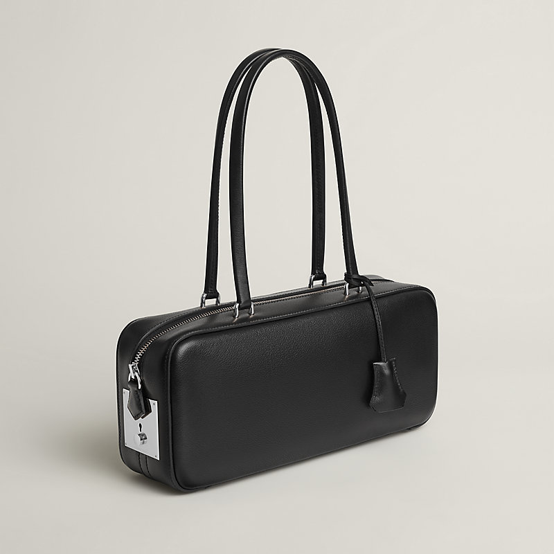 Inspired by the silhouette of a travel bag, the Faubourg Express bag pays tribute to the iconic 24 Faubourg Saint-Honoré store, the theme of 2024, while also honoring the Maison's heritage. Its gold or silver-finished lock draws inspiration from the intricate mechanisms and fine craftsmanship of the Plume bag and the archival Quirus model. The bag's minimalist design and defined structure reveal the sophisticated craftsmanship of the master saddler and leatherworker: mold assembly, seam-joining on the handle, and clasp beading. A highly contemporary bag in two sizes, designed to be worn over the shoulder or on the arm, ensuring an elegant silhouette for everyday wear.