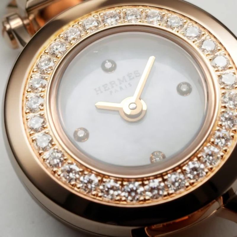 Diamond-set rose gold watch, quartz movement, diamond-set white mother-of-pearl dial, diamond-set rose gold bracelet