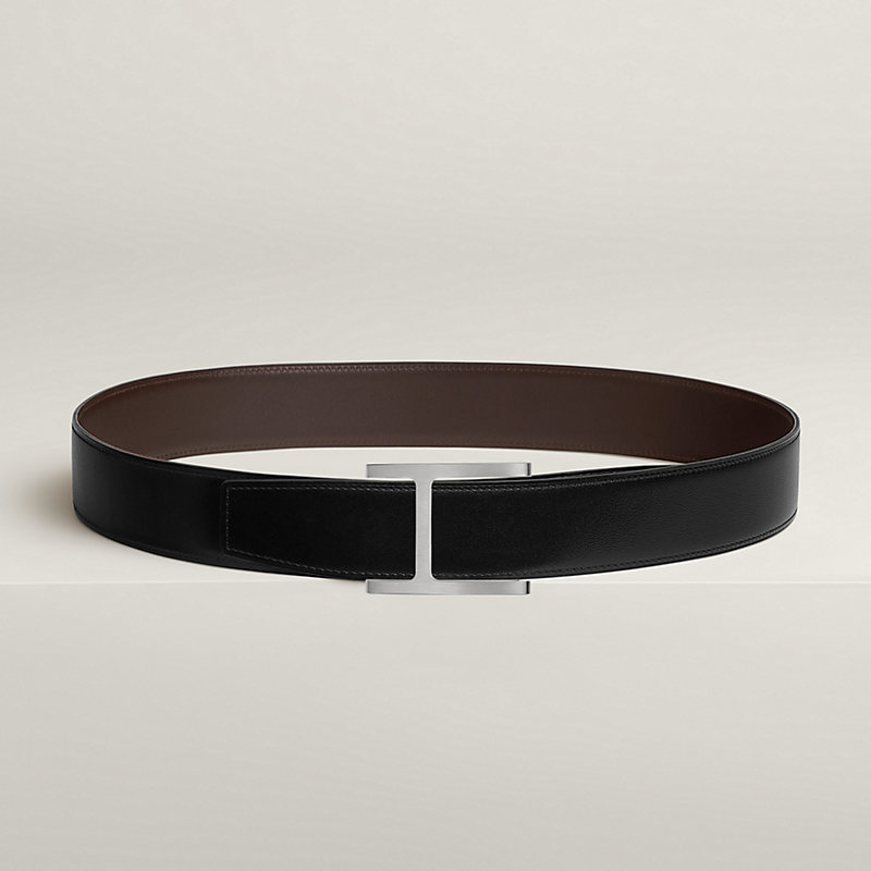 This buckle revisits our iconic signature with a modern twist. A metal thread intertwines with the leather, creating a subtle harmony between the two materials.