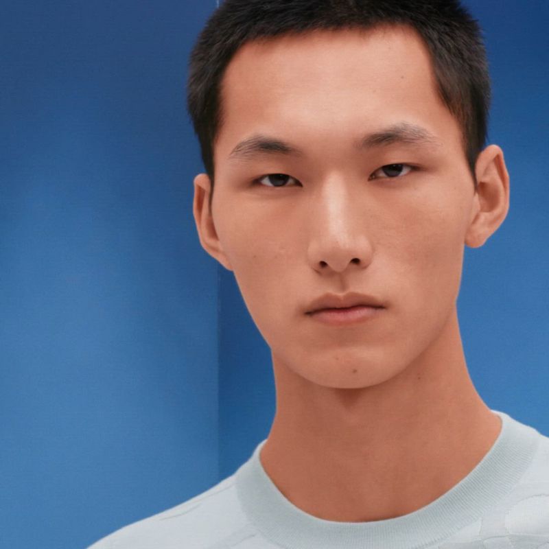 Short-sleeve crewneck sweater in wool with "Fragments Equestres" detail (100% wool)